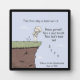 El pequeño DC está en el acantilado mirando hacia abajo. Él está vestido y listo para su salto. Miró hacia abajo y sigue las palabras de David A. Carrizales. Se prepara, respira hondo, toma la mano de Dios y PASO. Ilustracion de Christie Black.