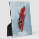 Representación digital 3D de una nave espacial roja sobre fondo azul del cielo