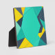Un diseño geométrico abstracto con un hexágono central o verde azulado audaz, enmarcado por un complejo mosaico de triángulos y polígonos de colores vivos. Las formas circundantes utilizan una paleta amarilla, azul marino oscuro y varios tonos verde azulados. Algunas de las secciones más oscuras y verde azuladas incorporan patrones lineales sutiles y líneas vectoriales blancas delgadas, añadiendo textura y profundidad al diseño, por lo demás plano y limpio. Esta pieza evoca una energía moderna, aguda y dinámica.