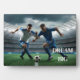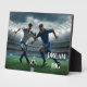 Plaque se muestra con una foto impresa de un futbolista deportivo. Personalizar este artículo o compra tal cual. Imagen de stock