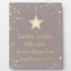 Maqueta de la Estrella Pequeña. Desde una ducha de bebé hasta un recién nacido, la pequeña estrella sería perfecta para cualquier padre que espere algo. "Twinkle, twinkle, pequeña estrella, ¿sabes lo amado que eres?" Esta encantadora placa de vivero captura maravillosamente la magia de la infancia y el amor ilimitado que rodea a tu pequeña. Ofrece un ambiente acogedor y un acento caprichoso, lo que lo convierte en el lugar perfecto para alojarse en una guardería o en una habitación infantil. Con esta encantadora placa, la respuesta es siempre clara: infinita e incondicionalmente.