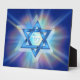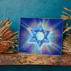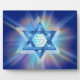 Estrella de David con la letra hebrea Shin en el centro con coloridos rayos de luz por detrás.