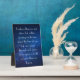 Esta placa para mesa tiene la imagen de estrellas en un cielo azul y un proverbio esquimal para consolar a quienes pasan por la pérdida de un ser querido (persona o mascota): Tal vez no son estrellas, sino aberturas en el cielo por donde el amor de nuestros seres queridos perdidos se derrama y brilla sobre nosotros para hacernos saber que son felices.