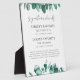 This eucalyptus signature drinks table top sign features soft botanical greenery in a clean, timeless design, perfect for displaying his and her cocktails along with a bar menu. Ideal for placing on the bar or drink table, this sign helps guests easily see your featured drinks while coordinating beautifully with matching eucalyptus wedding stationery and décor. The elegant greenery style complements garden, rustic, modern, and classic wedding celebrations.