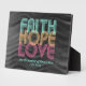 Placa Expositora Faith Hope Love Christian Bible Verse Retro