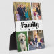 Esta divertida placa fotográfica de 4 es un maravilloso regalo de sake. El diseño se acentúa con la palabra "familia" que aparece en un texto retro negrita. Personaliza con tus fotos familiares favoritas, el nombre de la familia y el año. Fotografía familiar © Storytree Studios, Stanford, CA