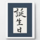 Un bello desplazamiento japonés con la caligrafía kanji para el cumpleaños y la palabra Happy delante. En una textura de "seda cruda" en amarillo mantequilla, este diseño asombroso es la tarjeta de cumpleaños personalizado perfecta. Añadir texto, cambiar diseño y fondo.