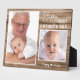 La idea de regalo del primer padre para el nuevo abuelo -una placa fotográfica moderna con una rejilla de collage creada con dos fotos y un mensaje sobre un fondo de textura de madera de moda.