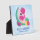 Placa fotográfica con tu nombre y negocio. Un bonito ilustracion de un flamingo rosa con algunas sandías y piñas. Color rosa y verde. Summery y tropical.