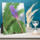 Flor del cono azul Bromeliad cerca y en un lecho de helecho de un jardín a la sombra
