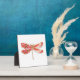 Dibujado artísticamente, dorado, libélula con joyas de color rojo y alas decoradas con rojo, floreciente, cerezo japonés con joyas sobre fondo blanco. Dragonfly de oro.