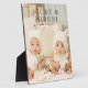 Una adorable placa fotográfica de tus gemelos como recuerdo de tu decoración de vivero. Añade tu propia foto dulce creativa con espacio en la parte superior para el tipo. Colocar esta placa en la pared del vivero o en una manta.