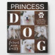 placa de homenaje al mascota con 4 fotos de tu amada perrera, fondo rústico de patrón de madera, cartas que deletrean DOG, las palabras "para siempre en nuestros corazones", un perro con un refrán diciendo, y su nombre.