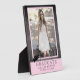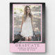 Moderna placa de foto graduada con un nombre de graduado, foto y gorro de graduación. El fondo es pizarra gris y rosa. Dulce foto para un graduado.