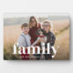 Guarde un recordatorio constante de su prioridad más importante cerca con esta placa de conservas de la familia dulce. Añada una foto horizontal o paisajística favorita, con "familia" colocada en letras blancas y tu apellido debajo.