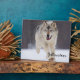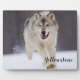 Plaque mostrado con una foto impresa de un lobo salvaje en el Parque Nacional Yellowstone. Personalizar este artículo o compra tal cual. Imagen de stock