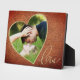 Placa fotográfica del Día de San Valentín de Corazón impresa con amor. La huella de cuero y el guión de amor dorado. La foto está en forma de corazón - agrega tu foto. Genial para una pareja.