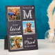 Celebra a tu mejor amigo con una placa de colección de fotos conmemorativas de perros personalizados en un diseño rústico de pizarra de pizarra. Esta singular placa conmemorativa del collage de fotos de perros mascotas es el regalo perfecto para usted, familia o amigos en honor a sus seres queridos. Esperamos que la placa de la pantalla de fotos de su perro en memoria de su mascota le traiga alegría, paz y recuerdos felices. Cita: "En la memoria amorosa... te aman más allá de las palabras, te extrañan más allá de toda medida". Personalizar con tres de sus fotos favoritas de mascota, monograma inicial y nombre. Vea 'personalizar esta plantilla' para cambiar fotos, monograma e inicial . Es mejor pre-recortar las fotos antes de descargarlas para que se centren en el marco. DERECHOS RESERVADOS © 2020 Judy Burrows, Black Dog Art - Todos los derechos reservados. Mascota Mascota memorial pérdida regalo placa personalizada de fotos de perros