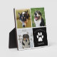 Esta hermosa placa conmemorativa de perro personalizada está personalizada con adorables imágenes y recuerdos de tu dulce cachorro. Personaliza este regalo de condolencias reflexivo con tus propias fotografías de mascotas personalizadas junto a un cuadrado negro con una huella de pata blanca bonita y el nombre de tu perro para expresar tu simpatía. Un diseño de recuerdo elegante para alguien que perdió a su querido perrito.