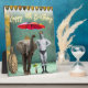 Viñeta de cumpleaños 40 de arte alterado divertido y divertido presenta hombre fuerte de la época y una sombrilla con recortes de fotos de elefantes con texto de neón