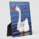 Placa Expositora ganso blanco de natación en agua azul