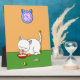 Este es un dibujo de un gato blanco bebiendo leche. Encima de él hay un reloj con la forma de la cara de un gato en la pared. También hay otros tamaños disponibles con el mismo diseño, haga clic en PERSONALIZAR para editar. Esta imagen está disponible en una variedad de otros productos, sólo tienes que hacer clic en el enlace debajo de la foto cerca de 'Acerca de este diseño'.