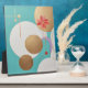 Une douce harmonie de cercles, de lignes et de fleurs s’épanouit sur cette toile. Les formes dorées reflètent la force et l’équilibre, tandis qu’une fleur corail éclatante apporte chaleur et émotion. Les nuances de turquoise, de blanc, de violet et d’or dansent ensemble, mêlant géométrie et poésie, précision et passion