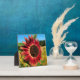 Una luminosa y hermosa mañana de verano en Oregón. Un único girasol rojo con una abeja.