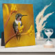 Una imagen de diseño fotográfico con un colibrí cocodrilo con vientre blanca que disfruta del sol de última hora de la tarde en medio del Golpe dorado de las flores de la pata canguro amarilla. Esta imagen se deriva de una foto tomada por Blair Wainman (conocido como Diseño Fotográfico) y no pertenece al dominio público pero está destinada a ser comprada a través de Photographic Design en Zazzle. Este diseño colorido y elegante es el regalo ideal para cualquier ocasión y sin duda complementa cualquier decoración de casa o de oficina.