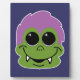 La goblin sonriente Adorable tiene piel verde, pelo morado funky, colmillos y grandes ojos dulces. Un regalo divertido para Halloween o todos los días.
