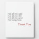 Di gracias a la persona que amas con esta placa. Agradece por estar allí por ti, por todo lo que dijeron, que te dieron. Mostrar amor.