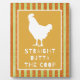 La placa de mesa de una granja divertida presenta la silueta de pollo con el texto "directo fuera de la copa" y el fondo vintage a rayas