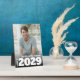 Su foto, nombre y clase de graduación favoritos de 2021, o cualquier año, se colocan directamente en un panel duro para una imagen increíblemente nítida con una superficie limpia de fácil borrado y un caballete integrado. Excelente como regalo o para mostrar tu foto favorita en tu casa. CONSEJO: Si usas placa cuadrada, recorta tu foto en cuadrado ANTES de subirla para obtener los mejores resultados. 3 TAMAÑOS DISPONIBLES.