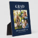 Collage de fotos de graduación con fondo azul marino te permite fácilmente personalizar y añadir tu foto, nombre, clase y nombre de la universidad. Con texto blanco sobre fondo azul marino con tipografía moderna popular.