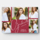 Una cuadrícula de cinco carteles de fotos de la universidad muestra tus fotos favoritas de este titular de graduación con la palabra graduada, año de clase y nombre. Más colores hechos para usted en nuestra tienda, así como invitaciones a fiestas de graduación, postales y invitaciones.