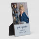 Un regalo de fotos elegante para tu bisabuela. Esta placa de caballete está escrita con "bisabuela" en tipografía caprichosa vinculada a un corazón adorable y puedes personalizar con tu nombre y mensaje, como te amo. La plantilla de fotos está configurada para agregar 3 de tus fotos favoritas que se muestran en formato vertical. Si tiene algún problema con la colocación de sus imágenes, intente recortar a retrato antes de subir. Un atractivo regalo fotográfico que cualquier bisabuela amará y perfecto para el Día de la Madre, cumpleaños o cualquier ocasión a lo largo del año. El diseño tiene una paleta de colores de gris y azul que puede cambiar fácilmente si pulsa "personalizar más lejos".