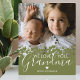 Placa fotográfica personalizada de la abuela que incluye una preciosa foto familiar, un diseño botánico de borde de corazón verde, el dicho "te queremos abuela" y los nombres de los niños.