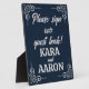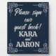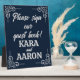 Placa Expositora Gris sobre el libro de invitados de Boda de pizarr