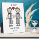 Regalos de matrimonio gay y favores de matrimonio gay para novios gays atando el nudo y casándose. Imagen de pinturas artísticas con figuras de palos y texto que dice "Lo hago". Grandes ideas de regalo para los novios gay que tienen un boda.