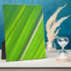 Diseño: Ein cooles, hellgrünes Maisblattdesign mit einer breiten, schräg verlaufenden Blattrippe und feinen hellen Linien