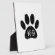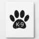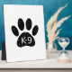 Un lindo estilo personalizado de la huella de la pata del perro y el texto con un efecto grunge y angustiado aplicado a la imagen. placas personalizados con tema K9. Idea de regalo.