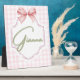 Agrega un toque de dulzura y elegancia al cuarto de tu pequeña con esta impresión personalizada para la habitación de la bebé. Con un fondo de gingham rosa suave, un delicado lazo de cinta y un nombre personalizable en una fuente de letra script encantadora, esta obra de arte es el toque final perfecto para cualquier guardería, sala de juegos o dormitorio.
