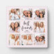 ¡Esta placa de moda muestra ocho de tus fotos favoritas de ti y de tu madre! Las palabras "mejores amigos" aparecen en un guión moderno negro, y hay espacio para añadir el nombre de usted y de su mejor amigo en un fondo rosado y bonito.