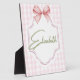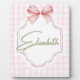 Agrega un toque de dulzura y elegancia al cuarto de tu pequeña con esta impresión personalizada para la habitación de la bebé. Con un suave fondo de gingham rosa, un delicado lazo de cinta y un nombre personalizable en una fuente de letra script encantadora, esta obra de arte es el toque final perfecto para cualquier guardería, sala de juegos o dormitorio.