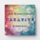 El texto dice Hacer algo creativo todos los días. Pintura abstracta con gruesas pinceladas expresivas con mucho movimiento y movimiento. Muchas pinturas pesadas en azul, amarillo, rojo, naranja y verde. Un estilo artístico y creativo Una cita/recordatorio inspirador y motivacional para los tipos artísticos y creativos.