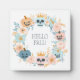 Placa Expositora Hello Fall Pumpkin Skull Halloween Floral Moderno