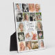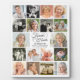 Crea una exposición de fotos de homenaje a la memoria conmemorativa con esta plantilla de collage de fotos 8x10 con 18 fotos con un elegante título de tipografía de escritura FOREVER EN NUESTROS CORAZONES acentuado con corazones dibujados a mano y personalizado con nombre y fechas. AYUDA: Para obtener ayuda con la modificación/personalización del diseño o la transferencia del diseño a otro producto, póngase en contacto con el diseñador ANTES DE PEDERLO a través de Zazzle Chat o makeitaboutyoustore@gmail.com.