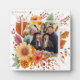 Esta hermosa placa de fotos de la familia de Acción de Gracias floral de otoño incluye tu fotografía cuadrada favorita rodeada de hermosas flores y hojas de otoño de acuarela. Personalice estos regalos de imagen con sus bendiciones de otoño o su mensaje de vacaciones en naranja bajo el diseño otoñal.