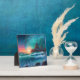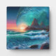 Experimente el encanto del océano en el crepúsculo con esta pintura abstracta multicolor del paisaje marino, una puesta de sol surrealista capturada en tonos opal, jade e iridiscente.