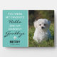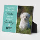 La más sentida placa conmemorativa de un mascota que muestra una foto de su amado mascota, y la frase de simpatía que dice "Fuiste mi saludo favorito y mi más duro adiós", una huella digital con el corazón dentro, el nombre de sus mascotas y las fechas de sus años de vida. Un bello recuerdo para una familia que amaba muy bien a su perro/gato.